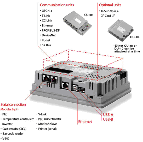 ※3 常溫25℃,表面輝度為初始設(shè)置的50%時。 ※4 僅限連接西門子公司MPI。 ※5 安裝選件單元DU-10時。 |