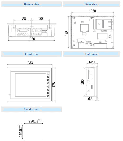 前面板:IP65,后蓋板:IP20 |